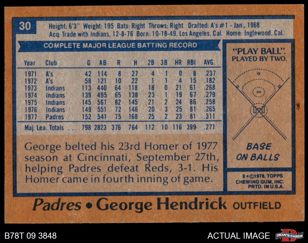 1978 Topps #30 George Hendrick 6 - EX/MT