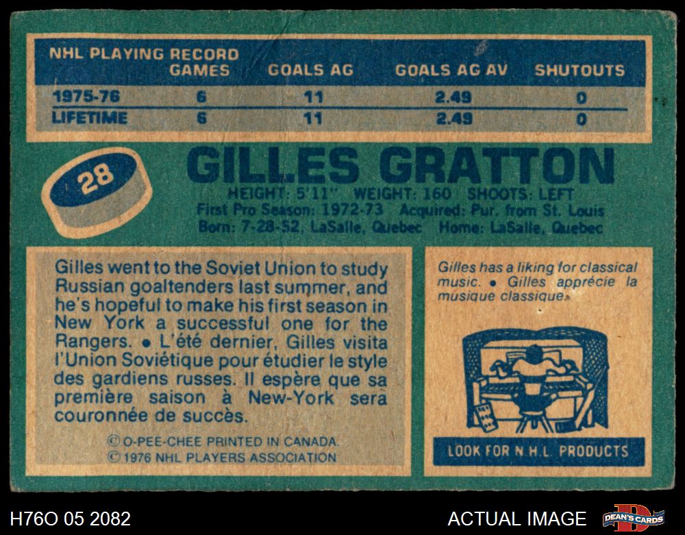 1976 O-Pee-Chee NHL #28 Gilles Gratton 1.5 - FAIR