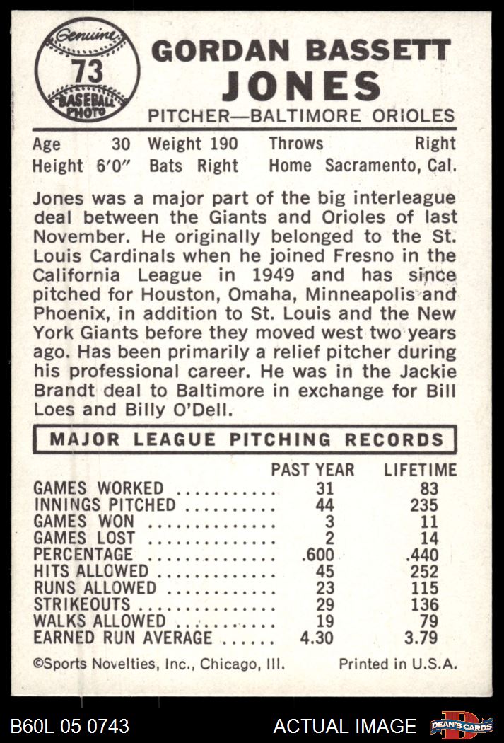 1960 Leaf #73 Gordon Jones 6 - EX/MT