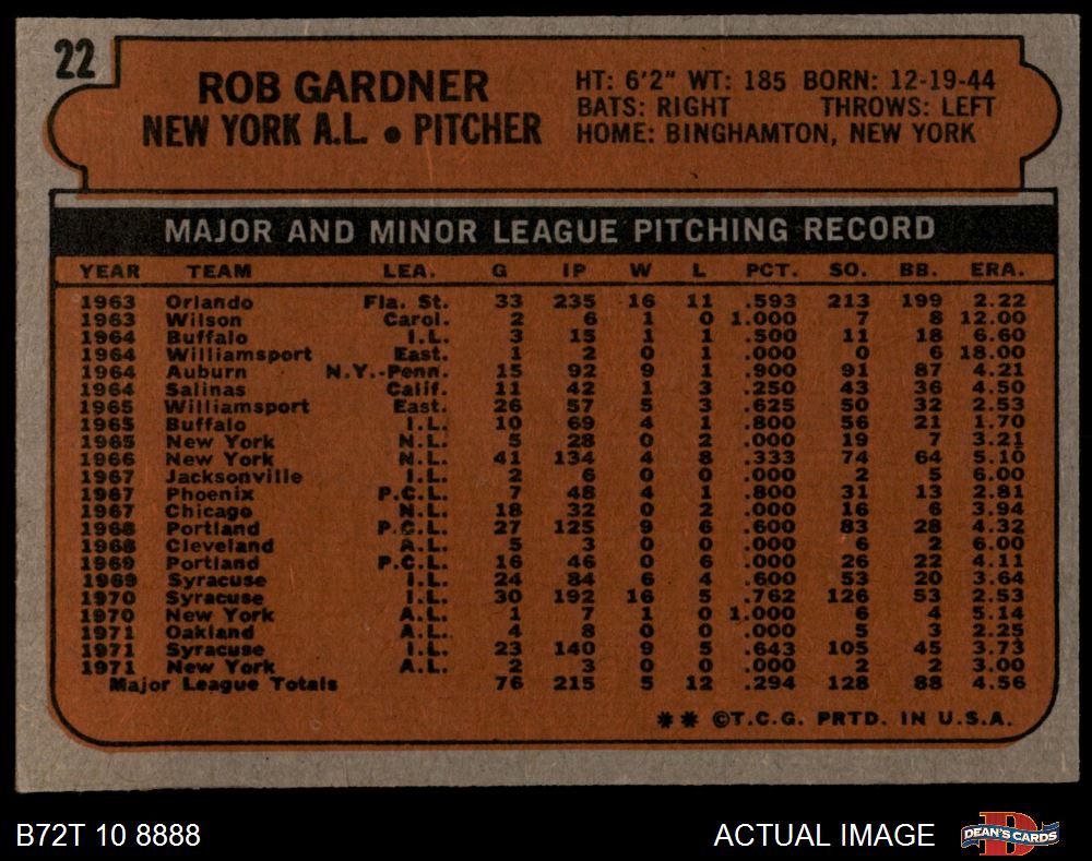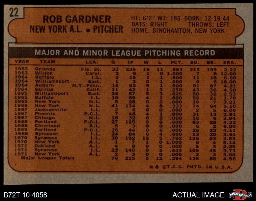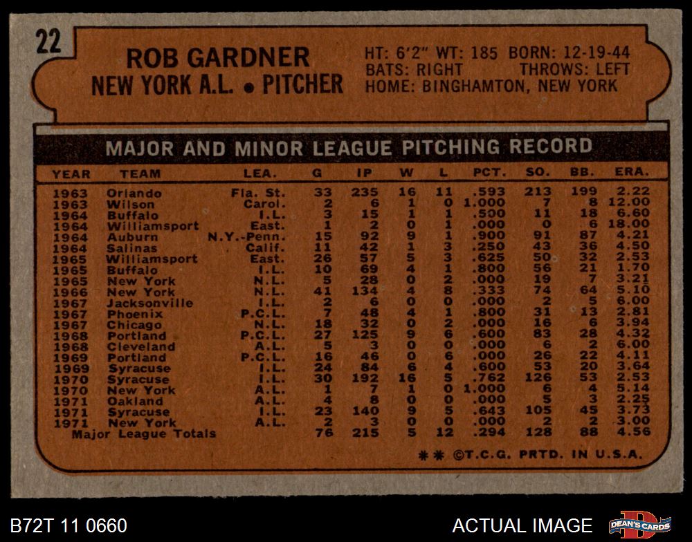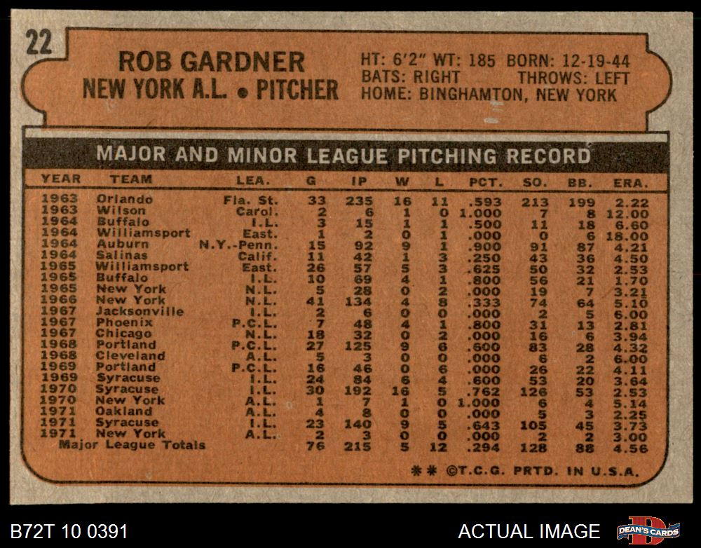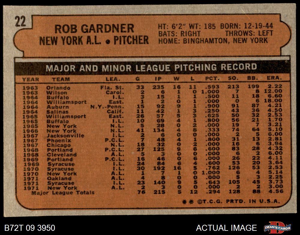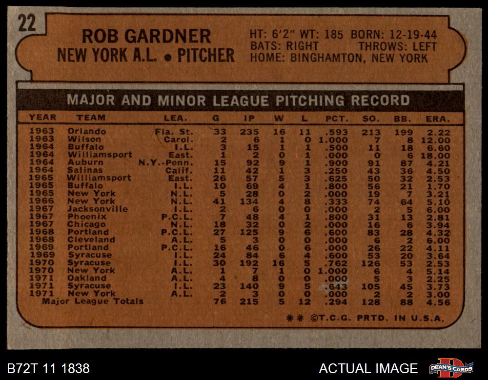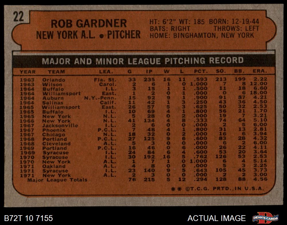 1972 Topps #22 Rob Gardner