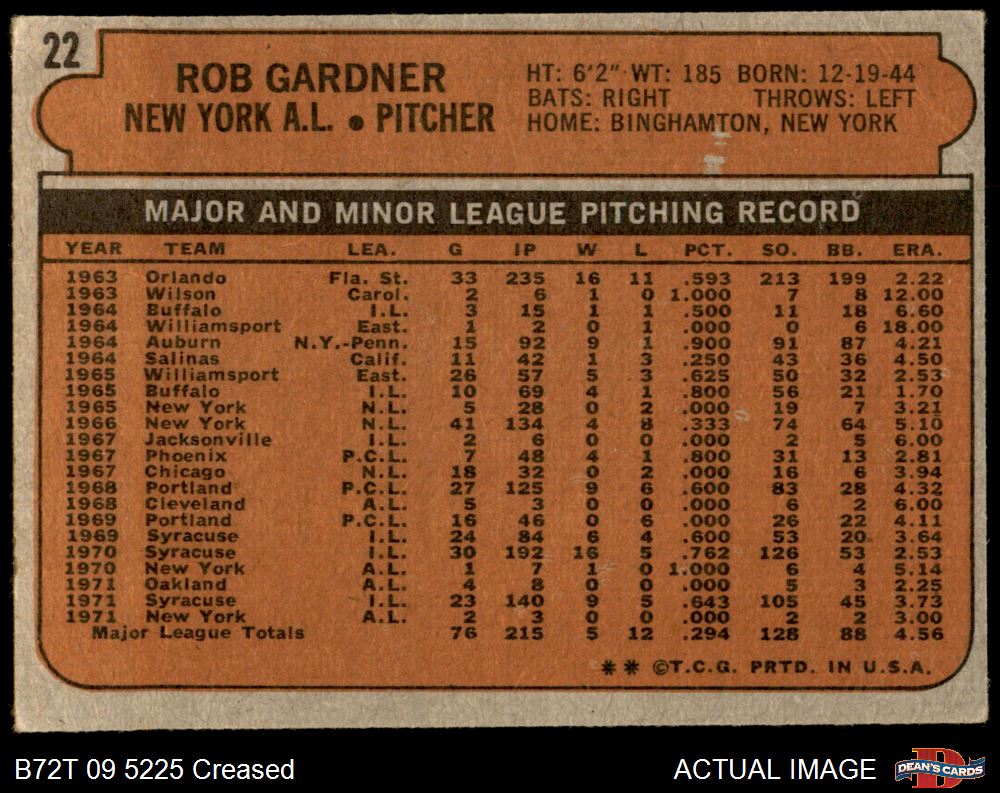 1972 Topps #22 Rob Gardner 2 - GOOD