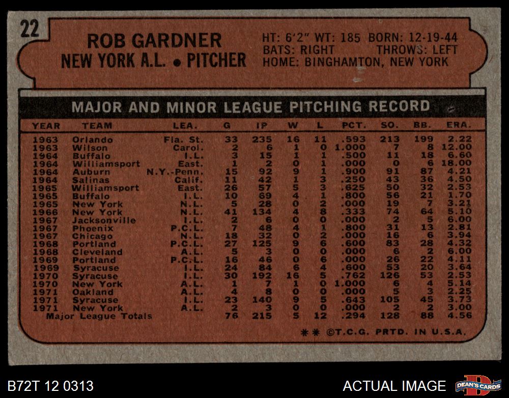1972 Topps #22 Rob Gardner 4 - VG/EX