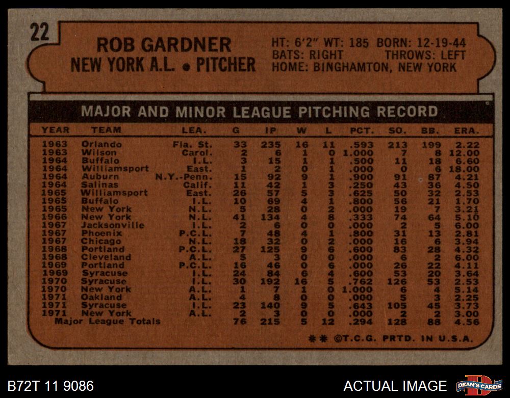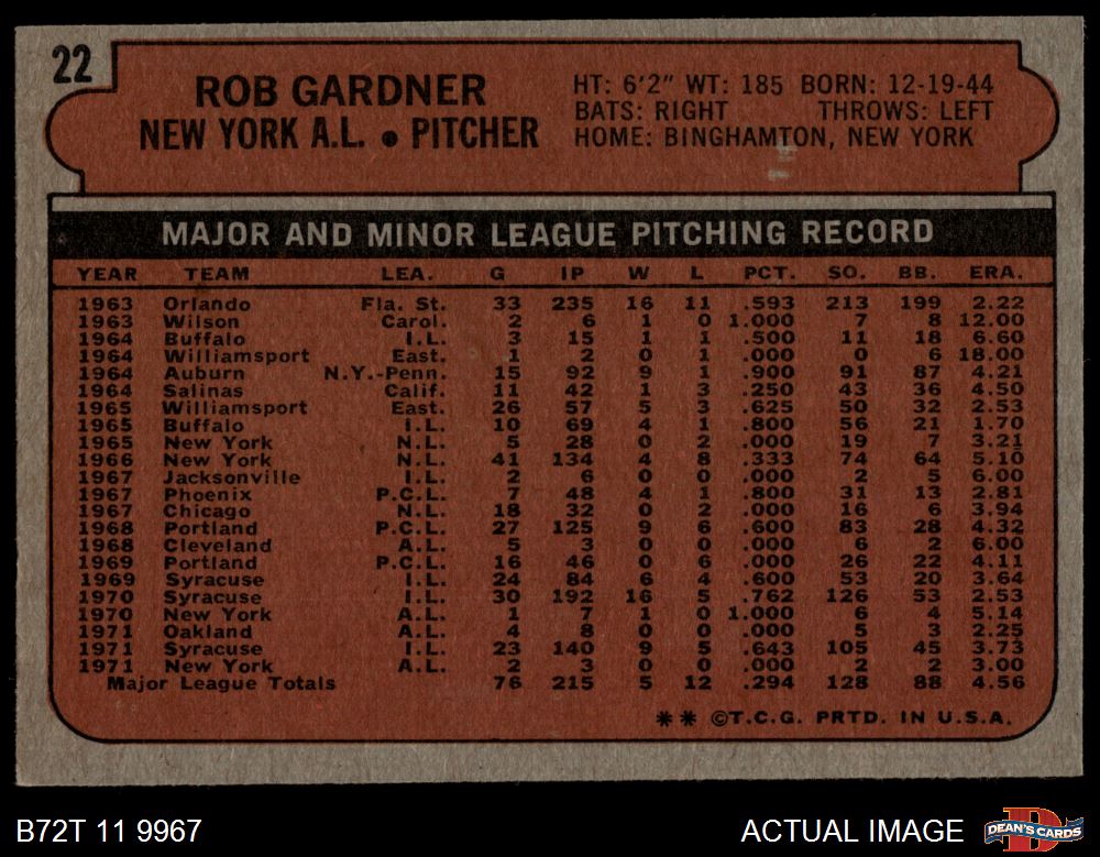 1972 Topps #22 Rob Gardner 6 - EX/MT