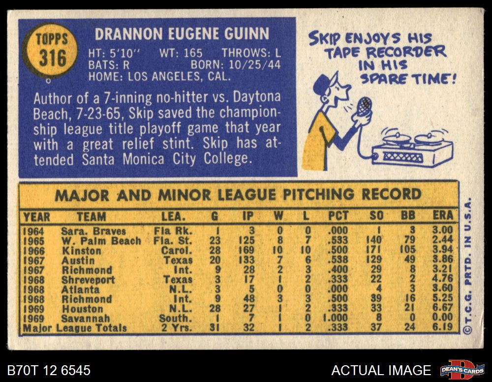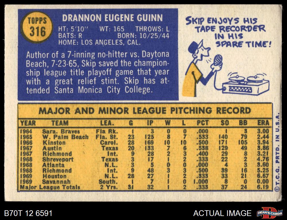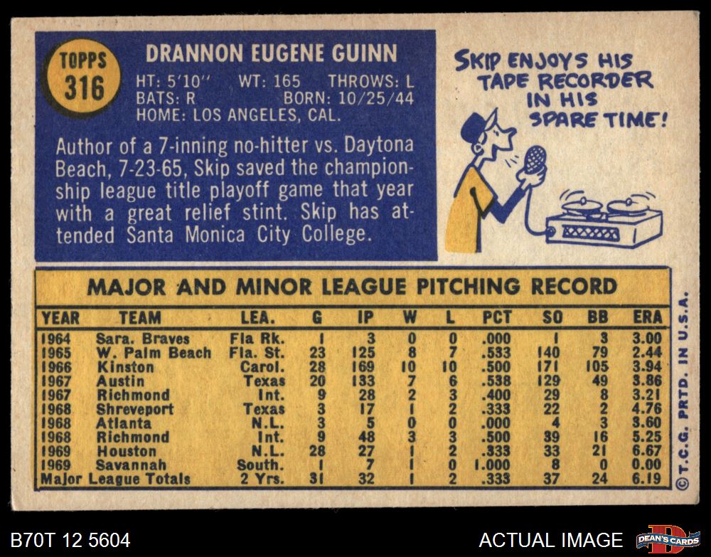 1970 Topps #316 Skip Guinn
