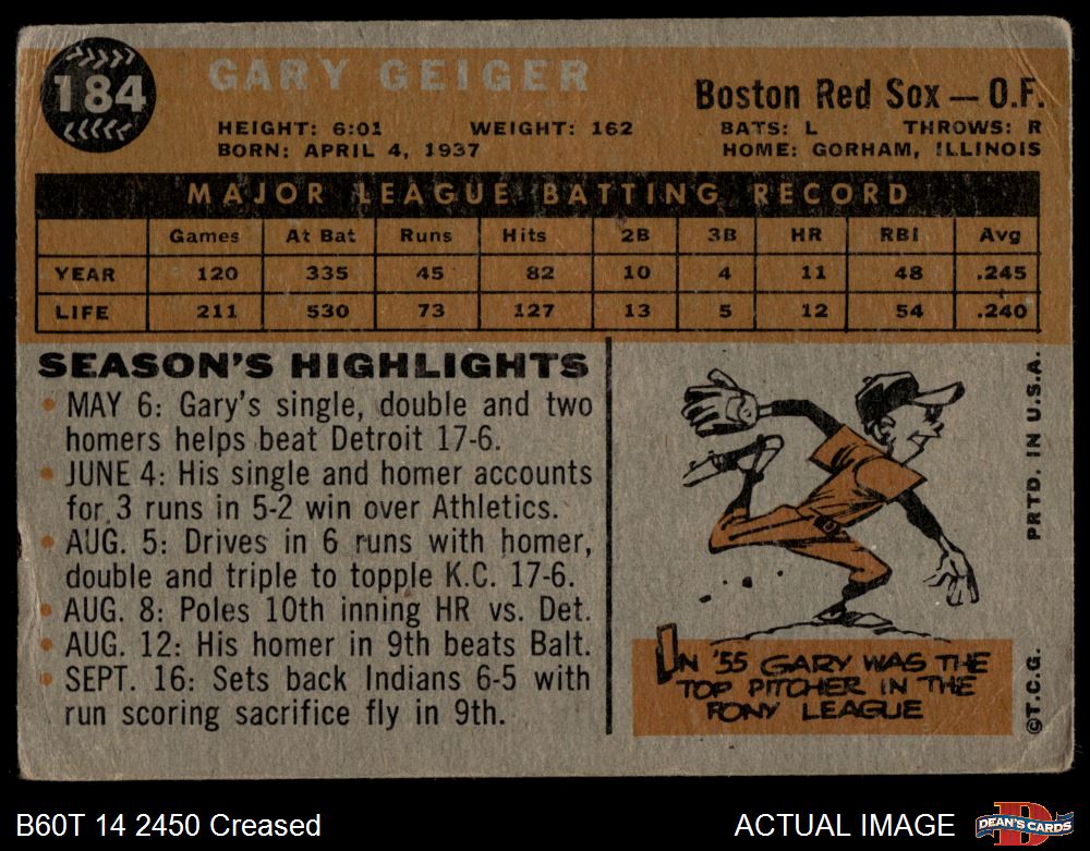 1960 Topps #184 Gary Geiger 2 - GOOD