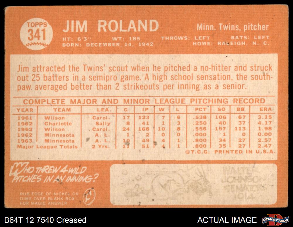 1964 Topps #341 Jim Roland Front Thumbnail