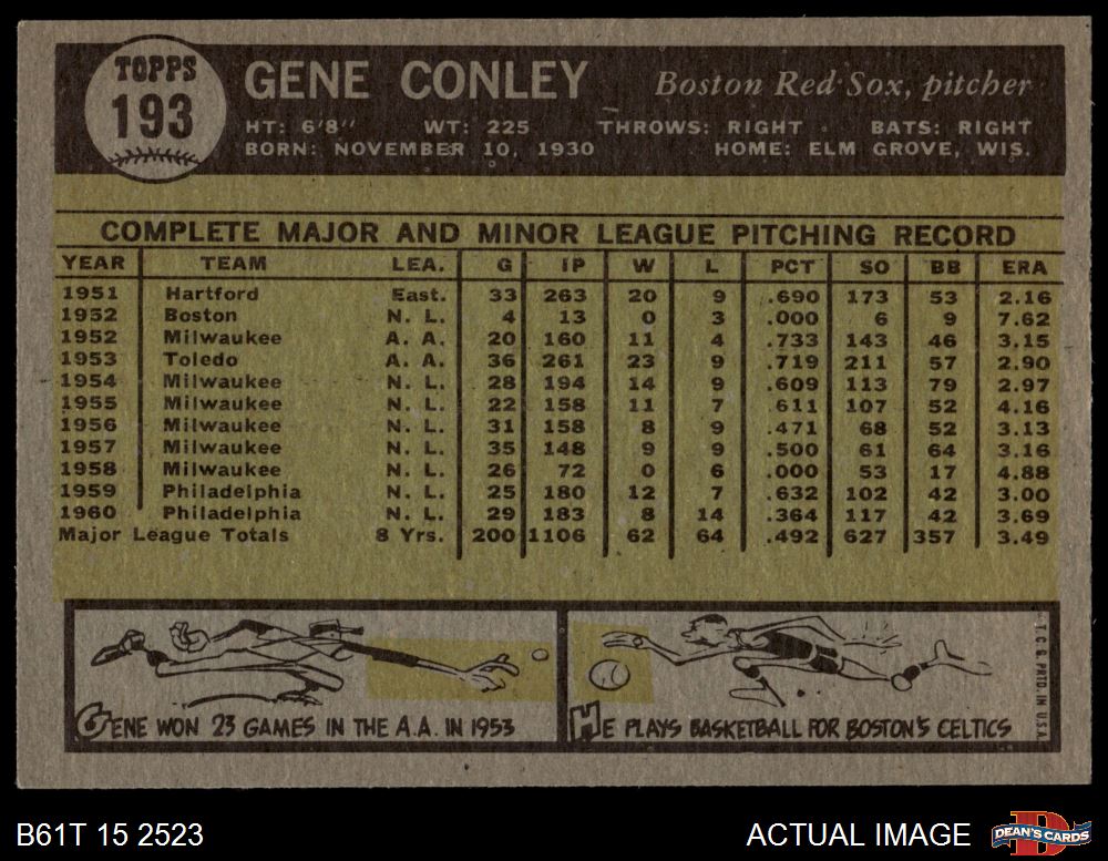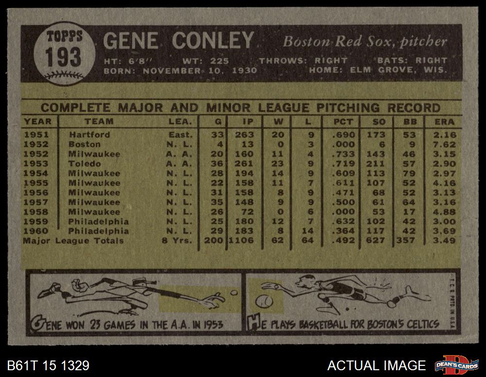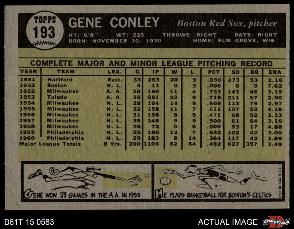 1961 Topps #193 Gene Conley 6 - EX/MT