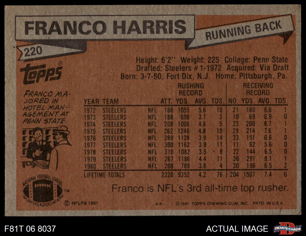 1981 Topps #220 Franco Harris 4.5 - VG/EX+