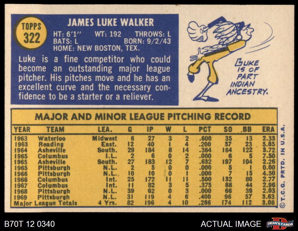1970 Topps #322 Luke Walker 6 - EX/MT