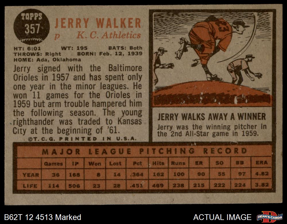 1962 Topps #357 Jerry Walker 1.5 - FAIR