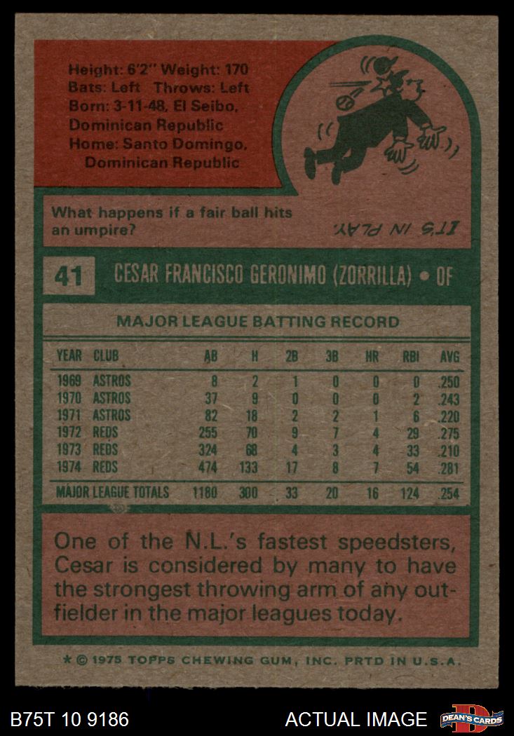 1975 Topps #41 Cesar Geronimo 8 - NM/MT