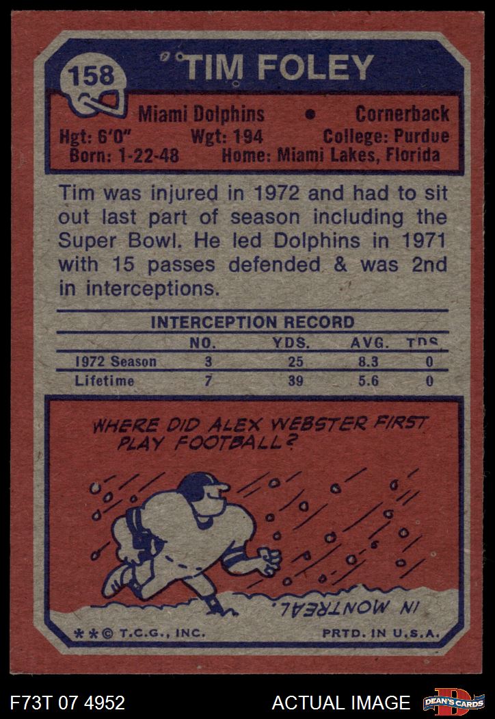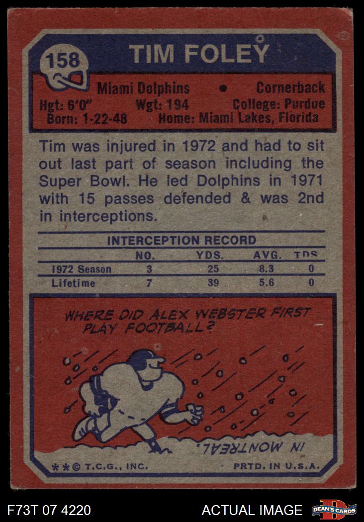 1973 Topps Football Cards (11,997 available)1973 Topps Dolphins (290 available)