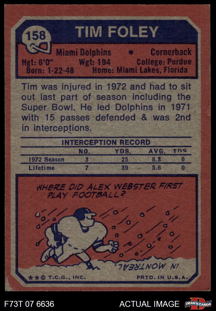 1973 Topps #158 Tim Foley 5 - EX