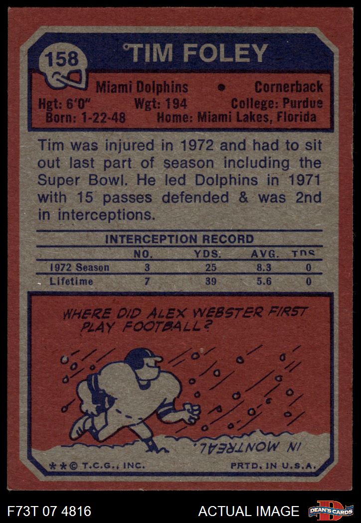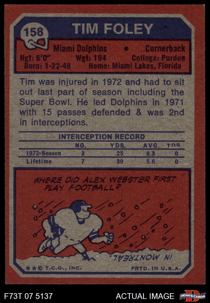 1973 Topps #158 Tim Foley 6 - EX/MT
