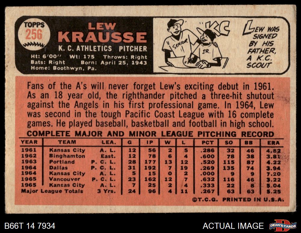 1966 Topps #256 Lew Krausse