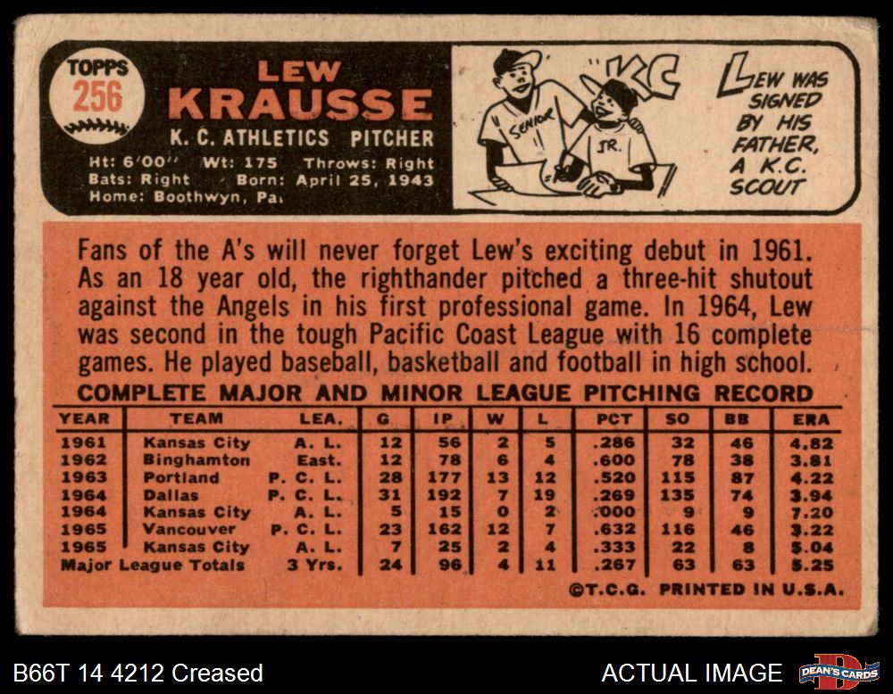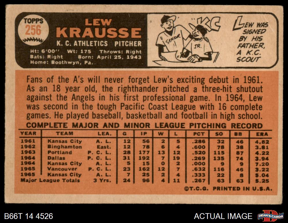 1966 Topps #256 Lew Krausse 2 - GOOD