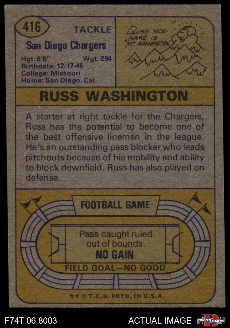 1974 Topps #416 Russ Washington 5 - EX