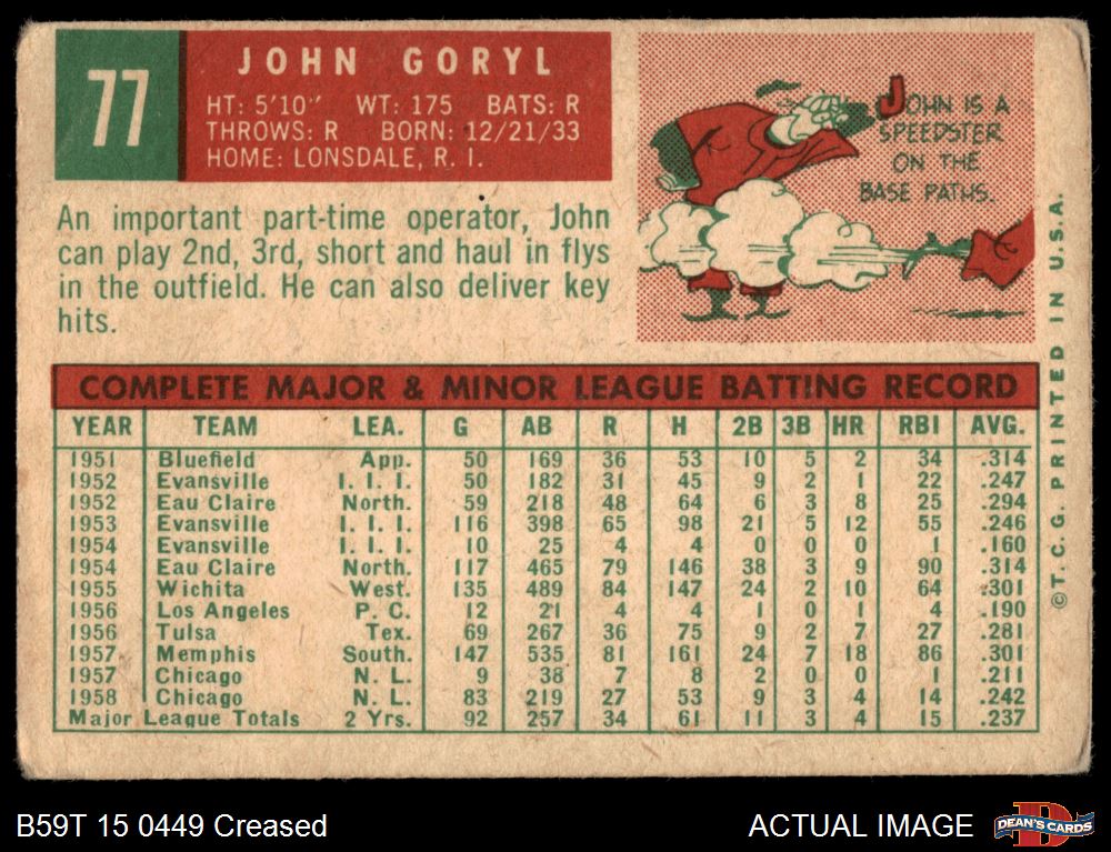 1959 Topps #77 John Goryl 1.5 - FAIR
