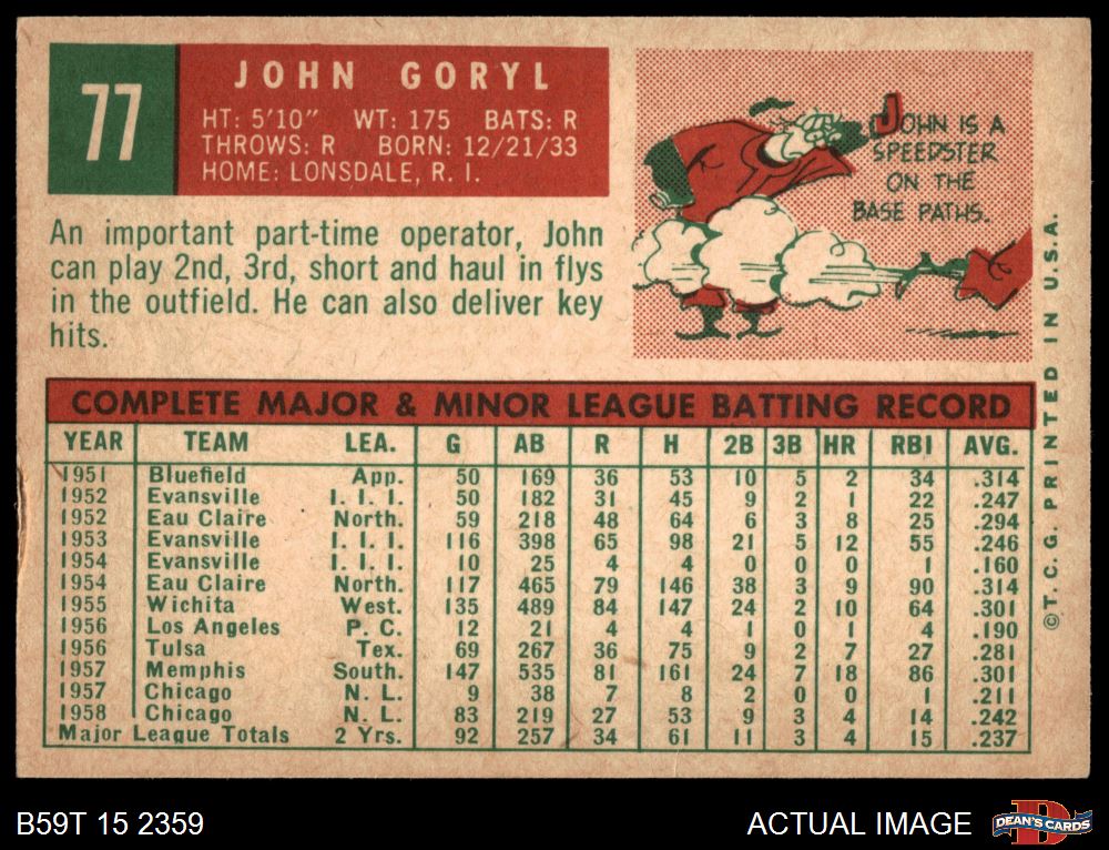 1959 Topps #77 John Goryl
