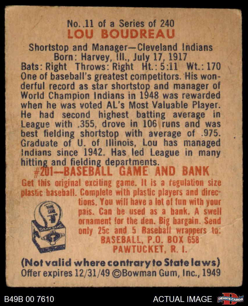 1949 Bowman Baseball Cards (707 available)1949 Bowman Indians (92 available)