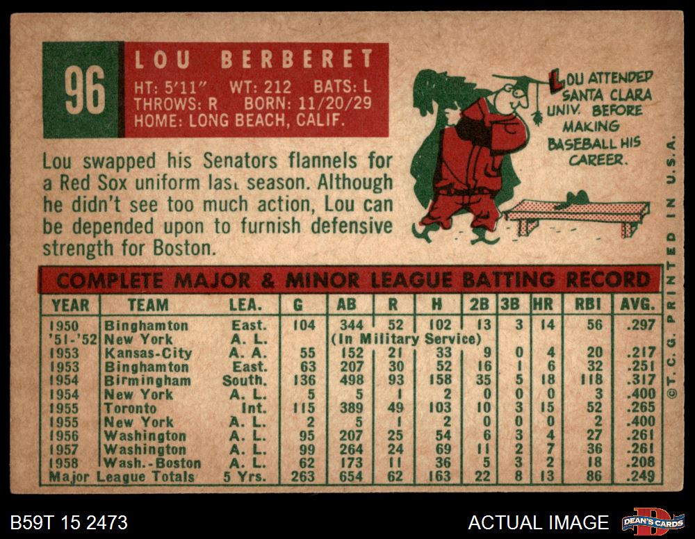 1959 Topps #96 Lou Berberet 3 - VG