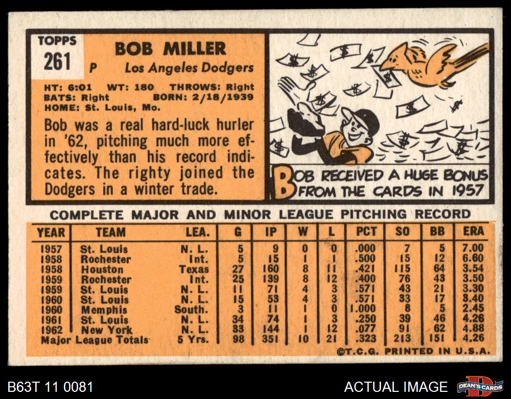 1963 Topps #261 Bob Miller 5 - EX