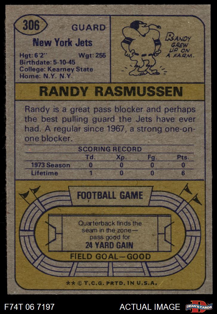 1974 Topps #306 Randy Rasmussen 5 - EX