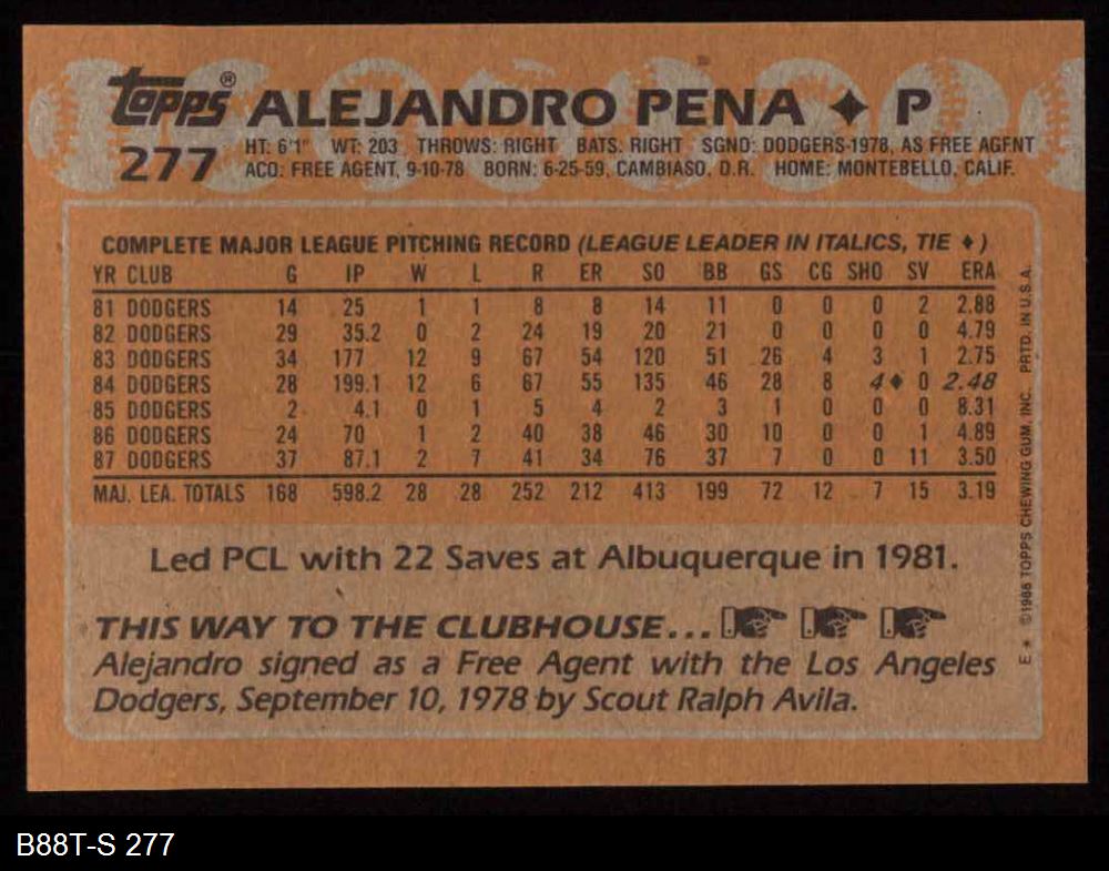 1988 Topps #277 Alejandro Pena