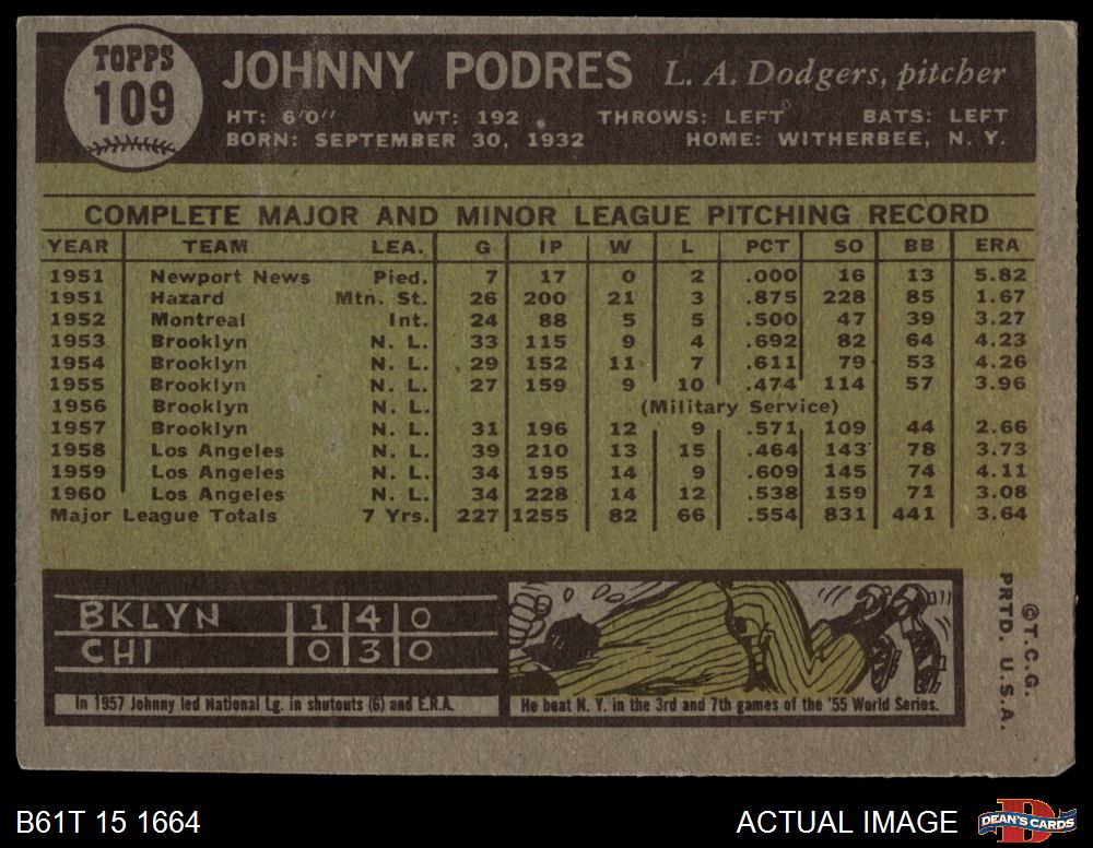 1961 Topps #109 Johnny Podres 2.5 - GD+