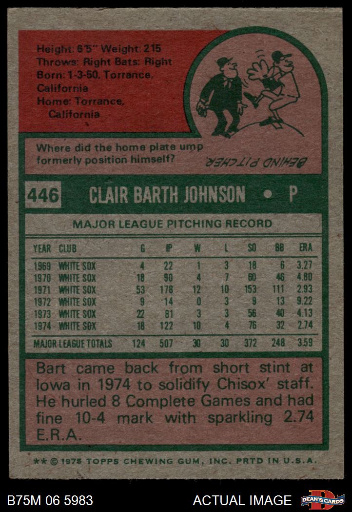 1975 Topps Mini #446 Bart Johnson 4 - VG/EX