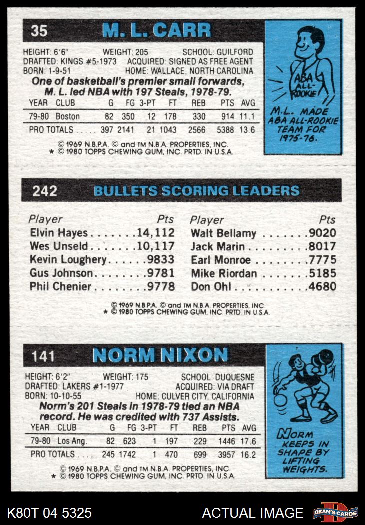 1980 Topps - Norm Nixon / Elvin Hayes / M.L. Carr 141 / 242 / 35 8 - NM/MT