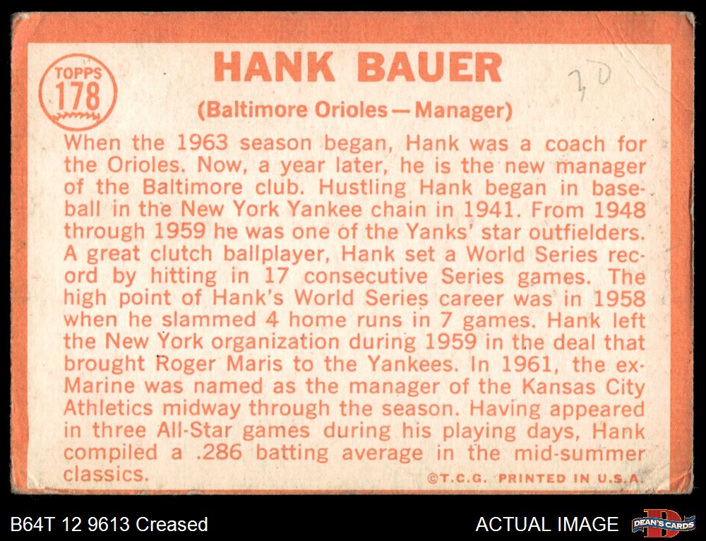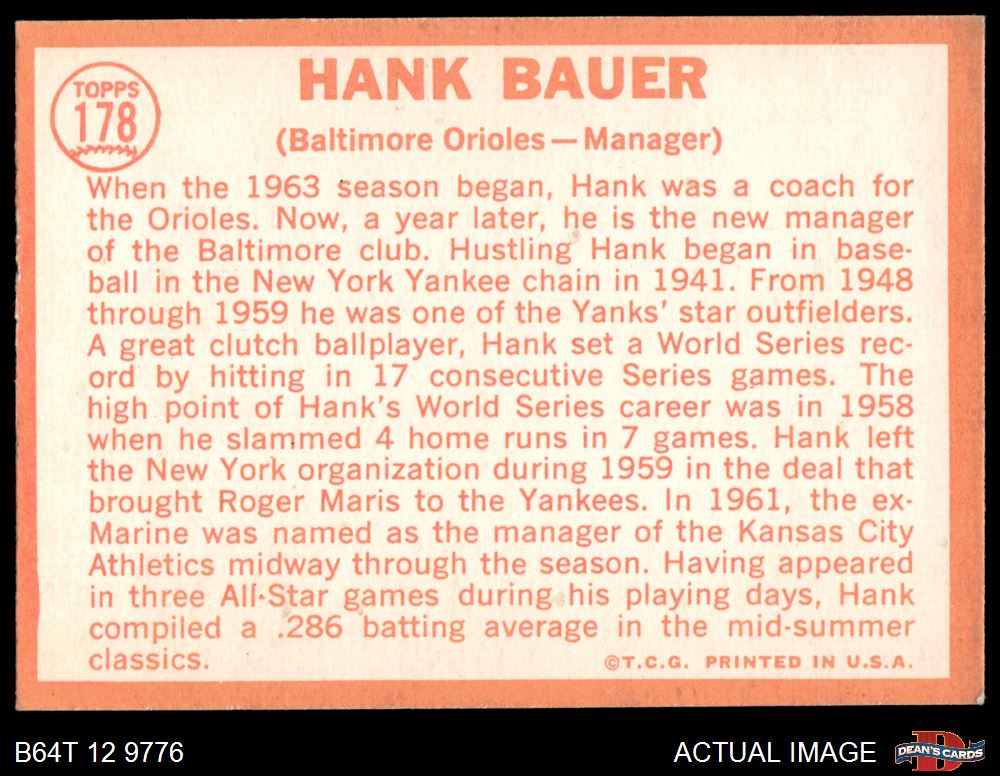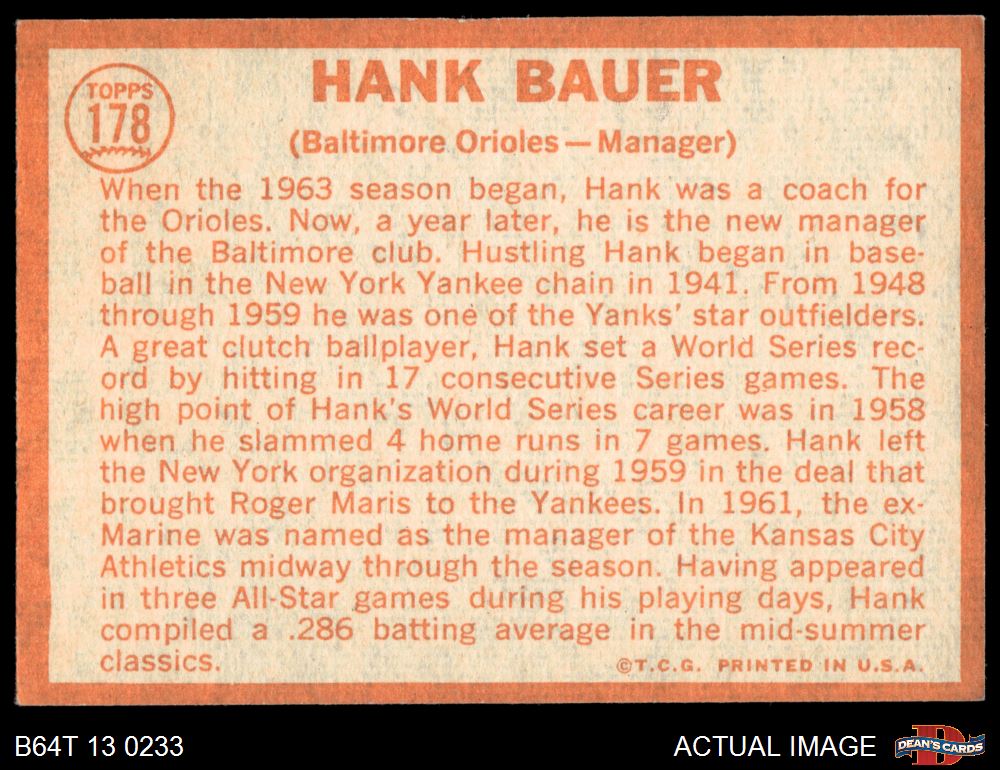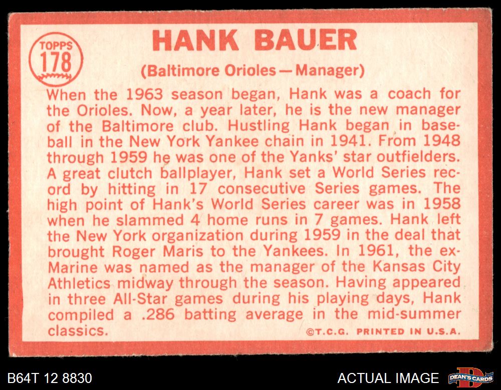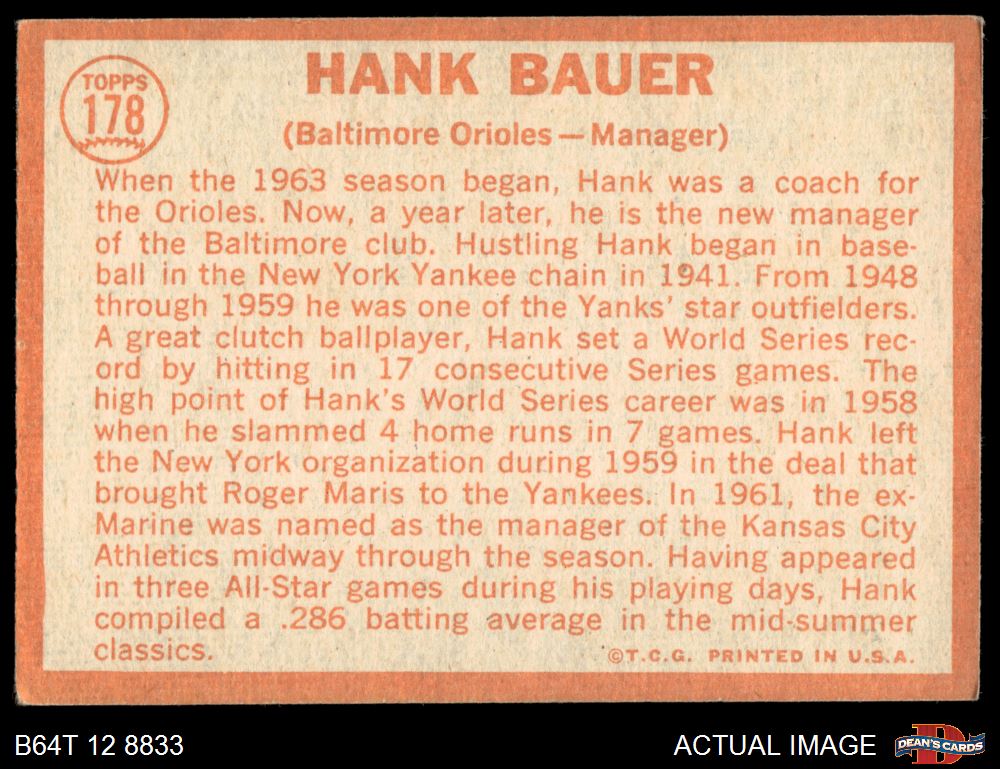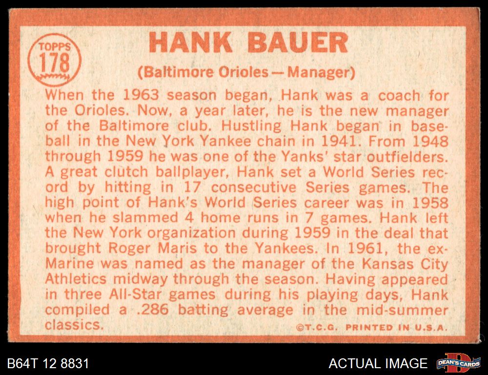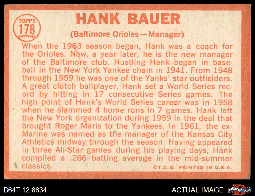 1964 Topps #178 Hank Bauer