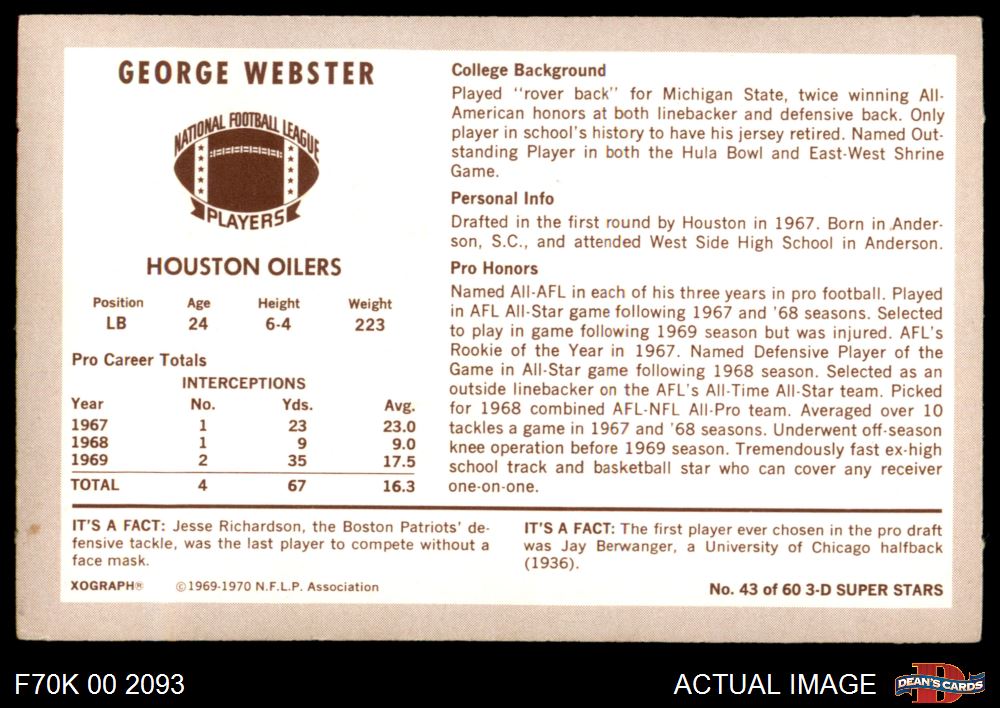 1970 Kellogg's #43 George Webster 4 - VG/EX