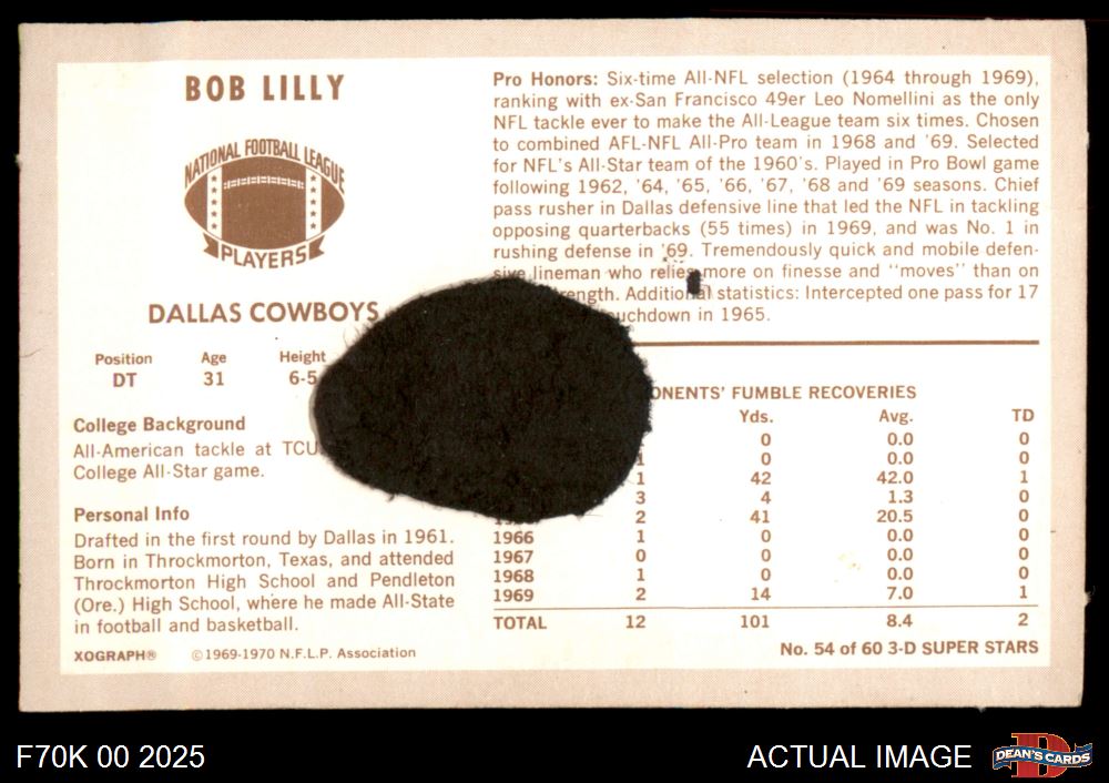 1970 Kellogg's #54 Bob Lilly 1 - POOR