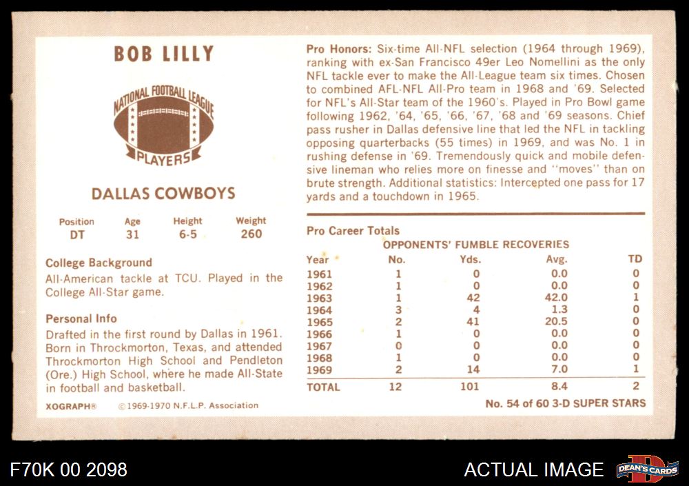 1970 Kellogg's #54 Bob Lilly 2 - GOOD