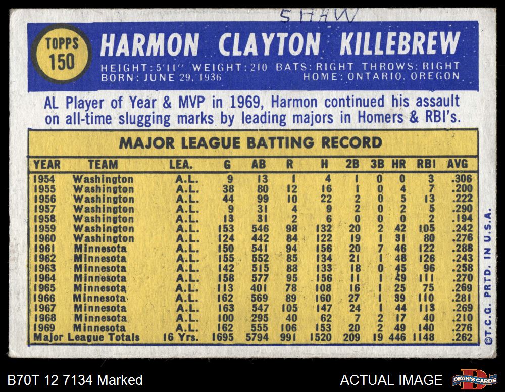 1970 Topps #150 Harmon Killebrew 1.5 - FAIR