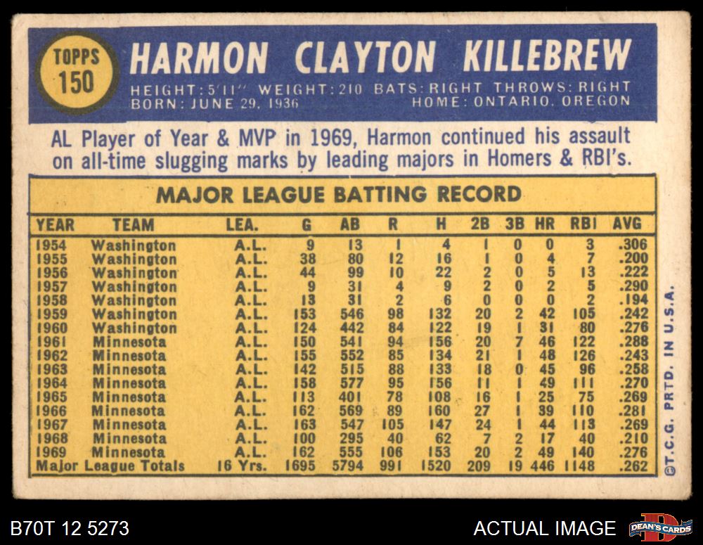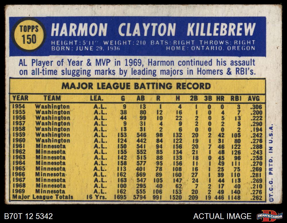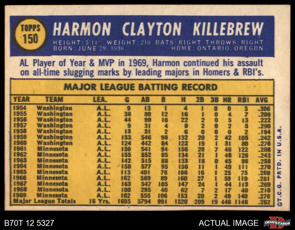 1970 Topps #150 Harmon Killebrew