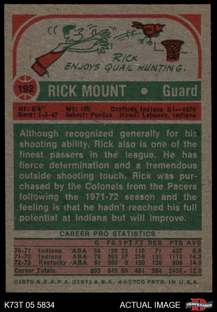 1973 Topps #192 Rick Mount 4 - VG/EX