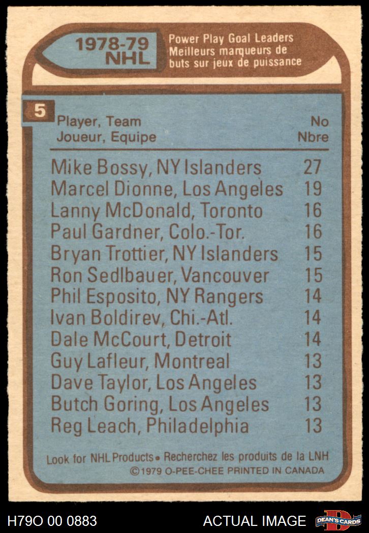 1979 O-Pee-Chee #5 - Mike Bossy / Marcel Dionne / Larry McDonald / Paul Gardner Power Play Goal Leaders 7 - NM