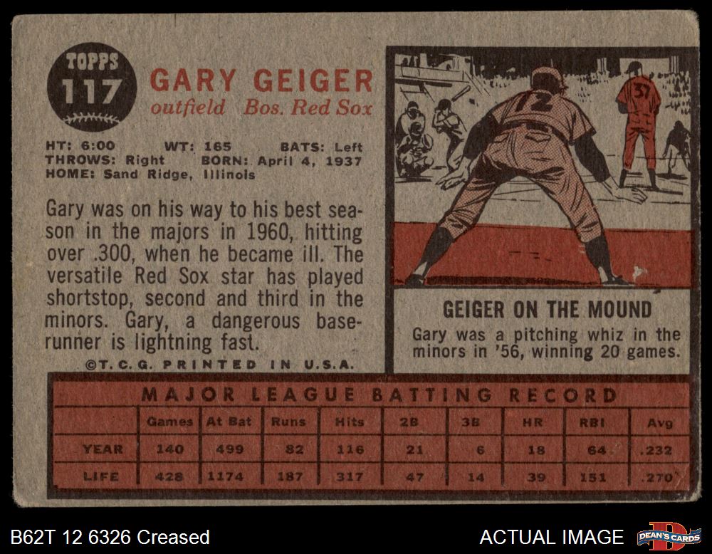 1962 Topps #117 NRM Gary Geiger