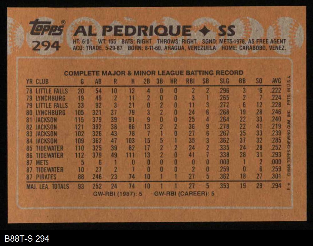 1988 Topps #294 Al Pedrique 8 - NM/MT