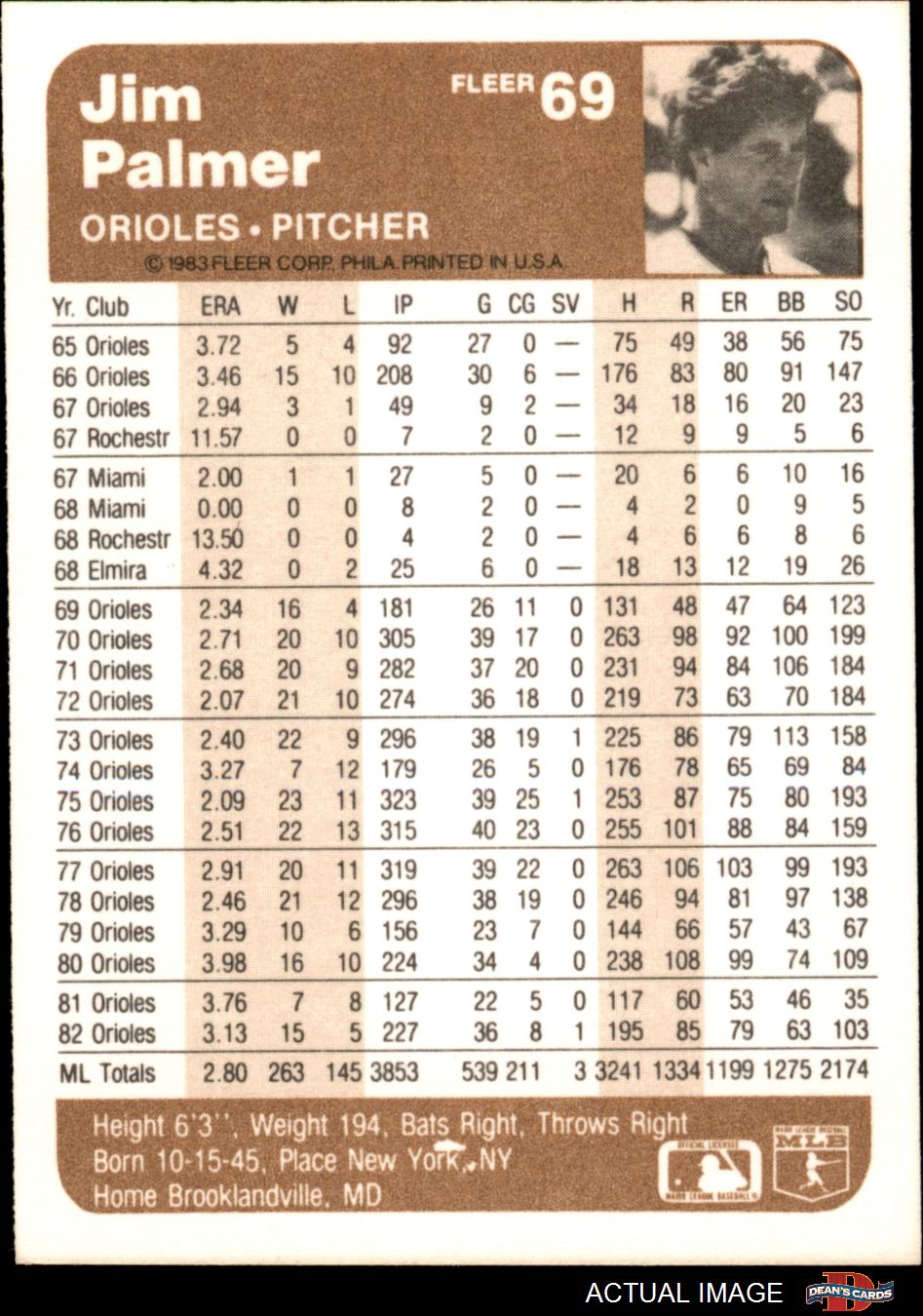 1983 Fleer #69 Jim Palmer 8 - NM/MT