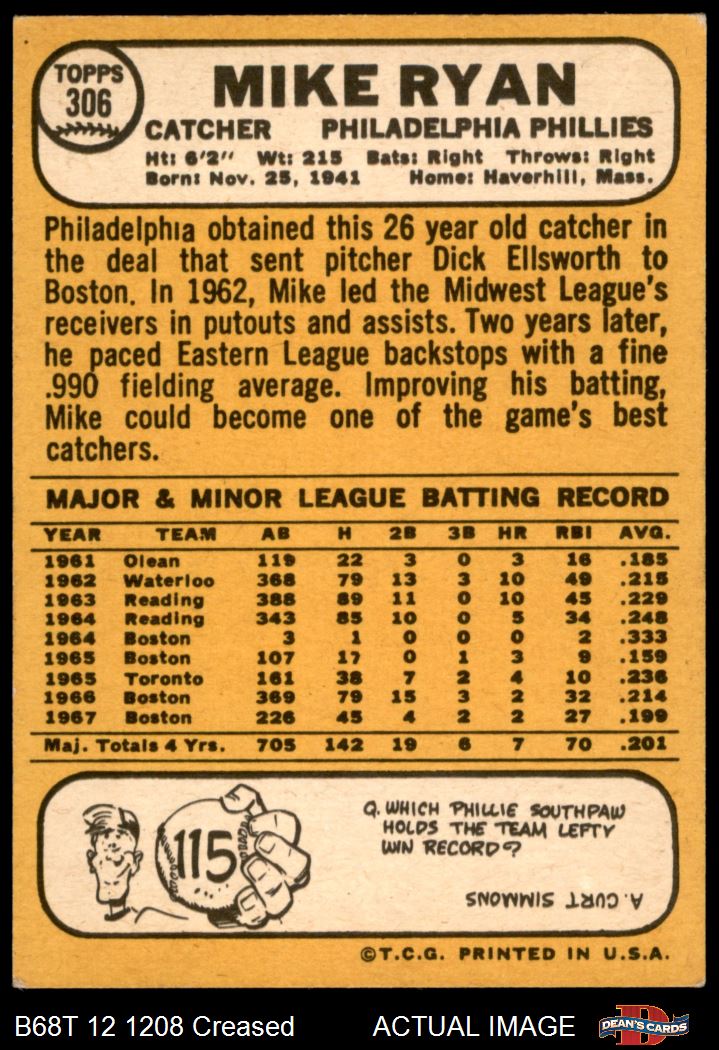 1968 Topps #306 Mike Ryan 3.5 - VG+