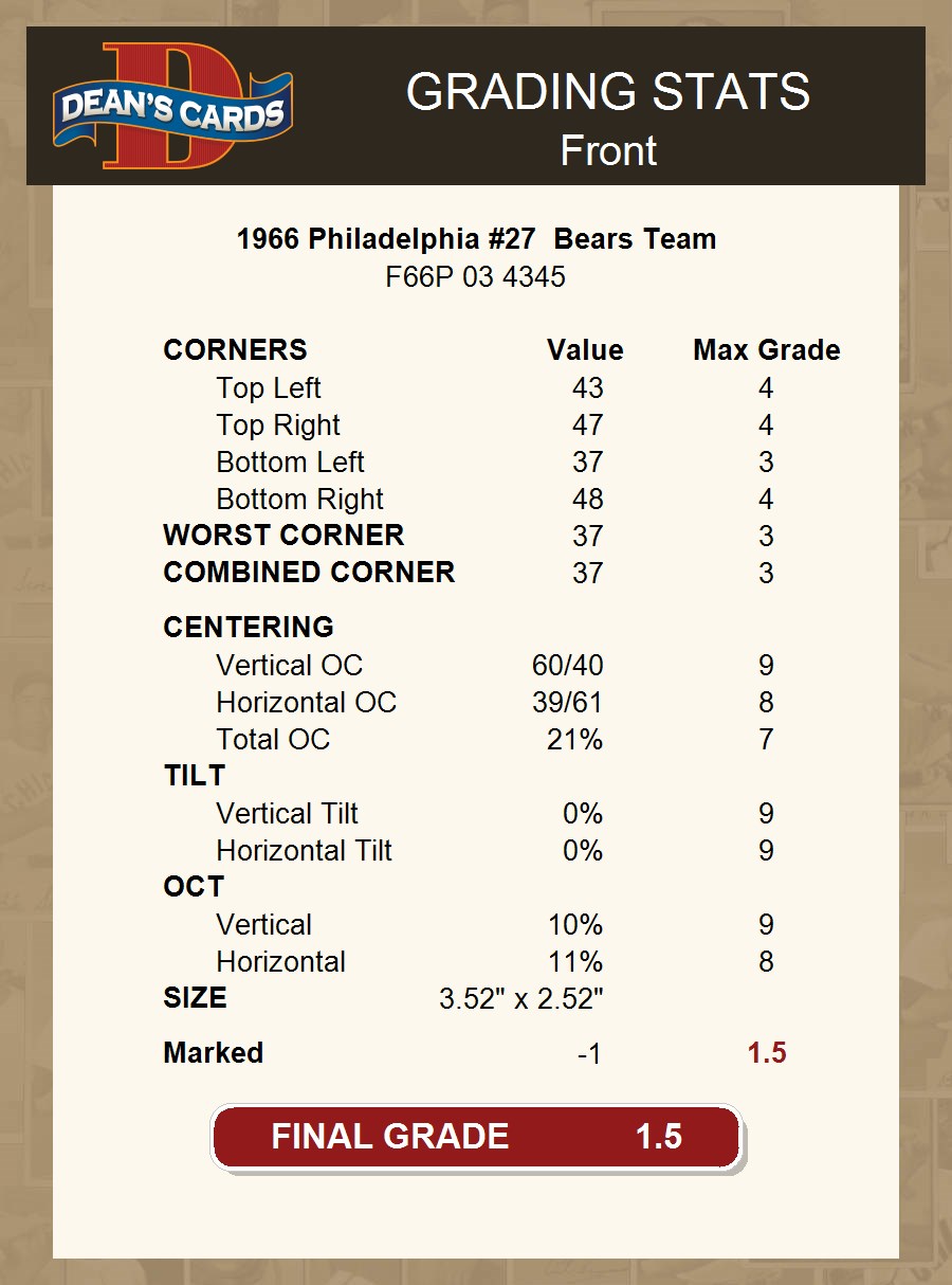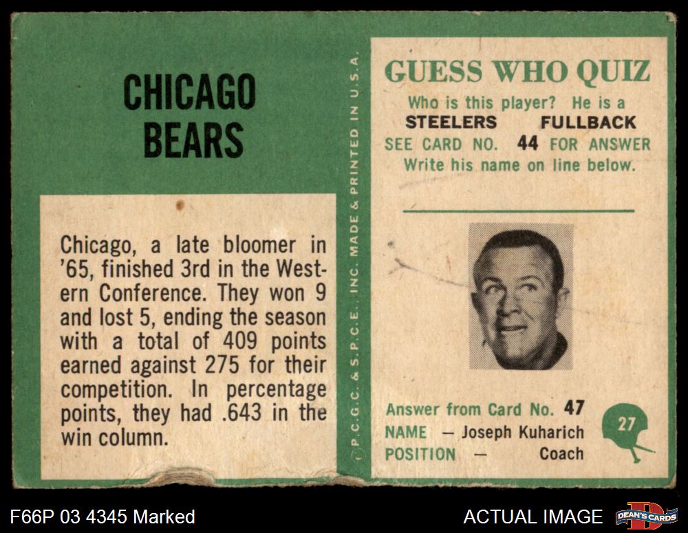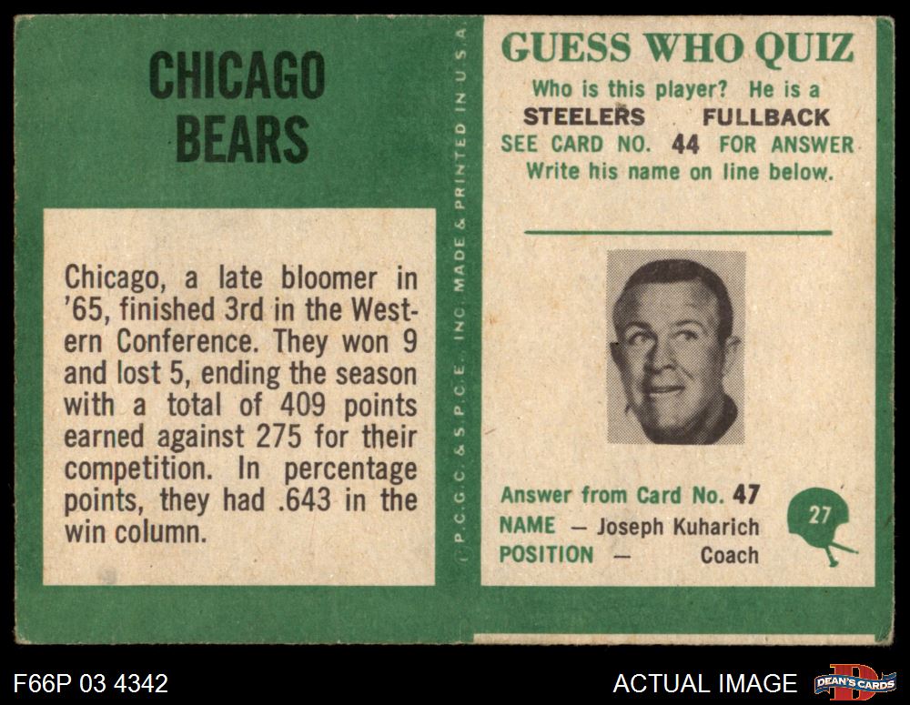 1966 Philadelphia #27 Bears Team