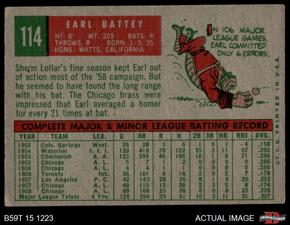 1959 Topps #114 Earl Battey 4 - VG/EX