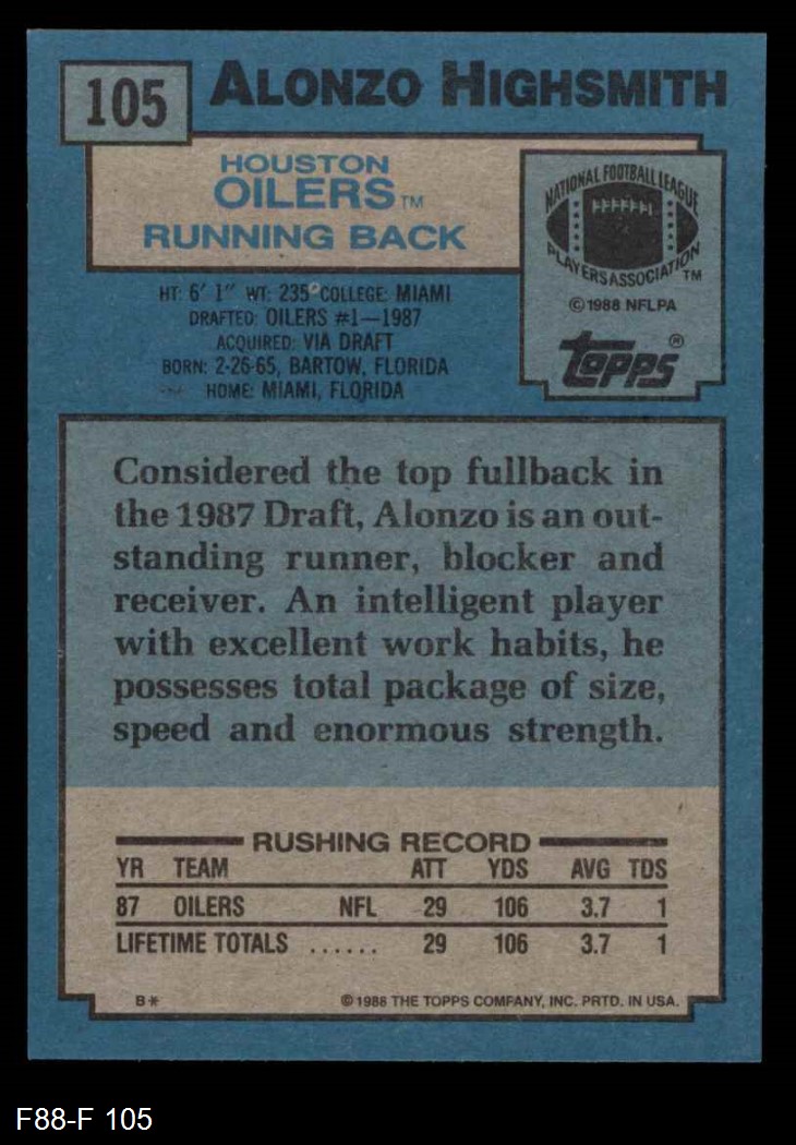 1988 Topps #105 Alonzo Highsmith 8 - NM/MT
