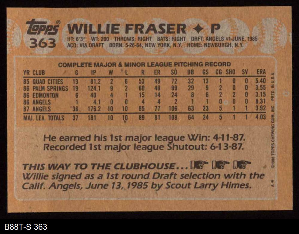 1988 Topps #363 Willie Fraser 8 - NM/MT