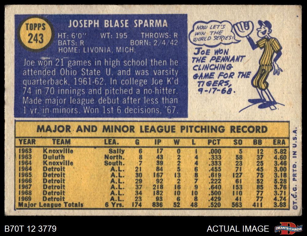 1970 Topps #243 Joe Sparma 4 - VG/EX
