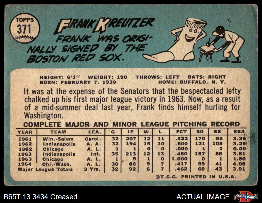 1965 Topps #371 Frank Kreutzer Front Thumbnail