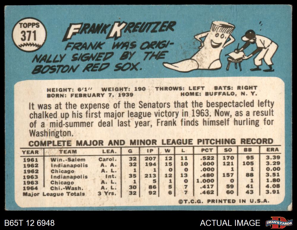 1965 Topps #371 Frank Kreutzer 3 - VG